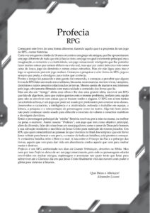 Assim nasceu o Profecia RPG ambientado na Grande Tribulação após o arrebatamento da igreja, descrito na Bíblia e fortemente inspirado pela Série Deixados para Trás e outros livros sobre o assunto. O sistema não tem pretensão de ser um trabalho premiado, (se bem que seria bom) mas peguei características que eu gostava em todos os sistemas que conhecia e fui adaptando ao cenário. Para isso bebi de várias fontes, desde os sistemas mais conhecidos como GURPS, D&D e família, ShadowRun e Storyteller até os que estavam despontando na época como o D20, Opera, 3D&T, Milênia e outros.